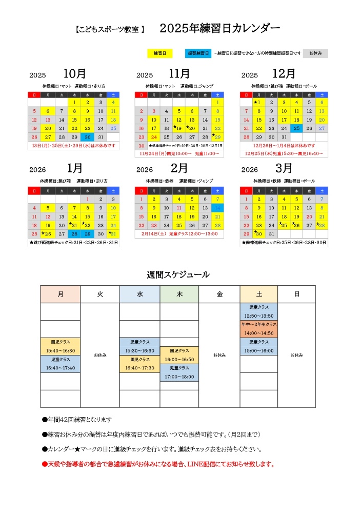 練習時間前半は体操種目のマット・鉄棒・跳び箱のいずれかを行い、後半はボール・バランス・走り方の練習など園児クラスより複雑な動きにもチャレンジします!